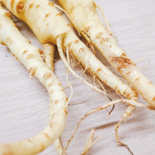 白くなめらかな肌で、見た目は白い人参のよう。ずんぐりとした形と淡いクリーム色が上