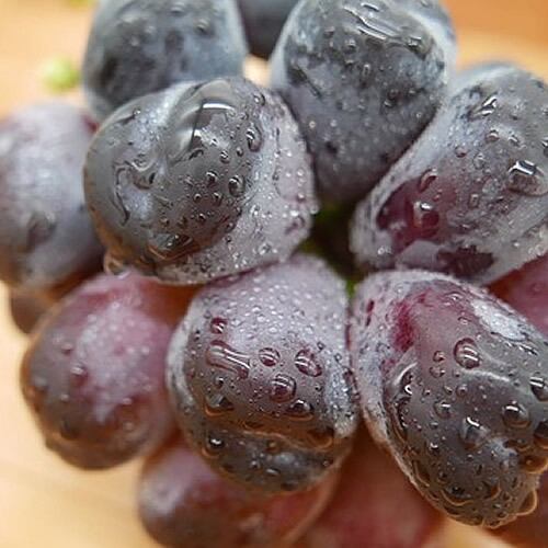 ・黒色の果皮:通常のシャインマスカットは黄緑色ですが、「富士の輝」は深みのある黒紫色で高級感があります。