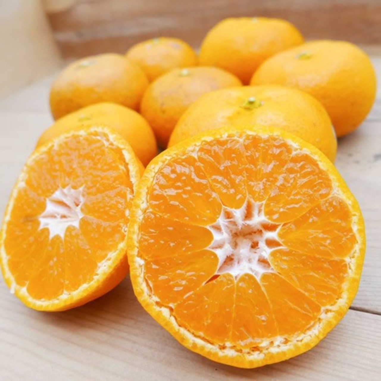 明るい橙色で皮が薄くむきやすい、果汁たっぷりの張りある果実です。